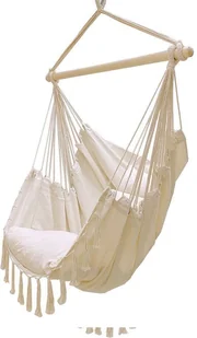 Huśtawka ogrodowa, fotel wiszący brazylijski z poduszkami 130kg beżowy