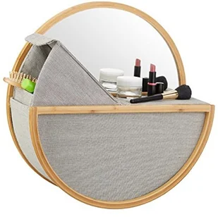CM Relaxdays lustro ścienne lustro lustro łazienkowe z miejscem do przechowywania, lusterko kosmetyczne ścian, okrągły, bambus, wys. x szer. x gł.: 45 x 45 x 15 naturalny 10021492
