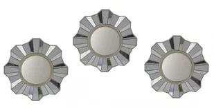 Zestaw trzech efektownych luster Elsag doda każdemu wnętrzu stylowego wyglądu. Lustro przypomina swoim kształtem słońce. Jego promienie zostały zrobione z małych nierównomiernych lustrzanych elementów. Wszystkie lustra mają taki sam kształt.