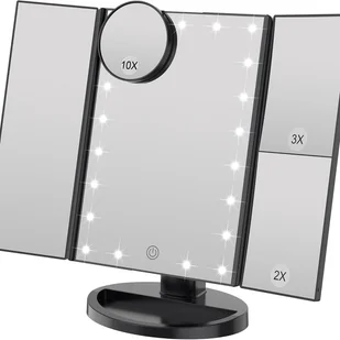 Lustro do makijażu z regulowaną jasnością, 22 diodami LED i powiększeniem 1X/2X/3X, podwójne zasilanie (czarne)