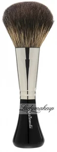 Zapobiega to wypadaniu i odkształcaniu włosia, które idealnie układa się na twarzy w trakcie pracy. Każdy z włosków przycięty na właściwej długości - dzięki czemu, pomimo swej gęstości, równomiernie się rozkłada na twarzy otulając ją w delikatny sposób pudrem. Wyprofilowany, drewniany trzonek pokryto warstwą czarnego lakieru. Dobrze leży w dłoni, zapewniając komfort i wygodę podczas pracy. Pędzel, dzięki stabilnej rączce umożliwia postawienie na toaletce.