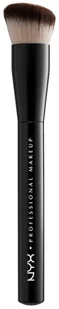 CAN T STOP WON T STOP - FOUNDATION BRUSH marki NYX Professional Makeup. Pędzel do makijażu. Wykonany został z bardzo miękkiego, syntetycznego włosia, gęsto ułożonego na czarnej skuwce. Posiada lekko ściętą, zaokrągloną końcówkę, która doskonale posłuży do nakładania kremowego i płynnego podkładu na twarz. Dodatkowo końcówka doskonale dopasowuje się do kształtu twarzy oraz nie wchłania zbyt dużej ilości produktu.