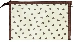Kosmetyczka piórnik wodoodporna kremowa w brązowe serca Uniwersalna kosmetyczka wodoodporna z kobiecym wzorem. Piękny ponadczasowy design i modny dodatek na co dzień i w podróży. Wykonana z podwójnego tworzywa - na zewnątrz miękki atłasowy materiał w dziewczęcym princie skradnie serca każdej kobiecie niezależnie od wieku. W środku natomiast miękka guma chroni zawartość kosmetyczki przed ewentualnym przedostaniem się na zewnątrz i zalaniem ubrań podczas podróży! Kosmetyczka idealna dla dłuższe podróże - niezwykle poręczna, a dodatkowo pojemna- pomieści Twoje ulubione kosmetyki lub inne niezbędne produkty. Solidne podszycie to ewenement wśród kosmetyczek tego typu! Niezwykle solidnie wykonana z pakownym wnętrzem będzie Twoim kompanem podczas podróży małych i dużych.