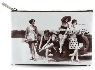 Płaska damska saszetka, angielskiej firmy Catseye, wykonana ze sztucznego tworzywa, z motywem starego zdjęcia przedstawiającego dziewczyny w strojach retro. Saszetka jest zapinana na suwak.