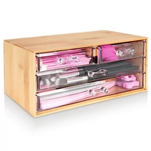 - WYTRZYMAŁY - Organizer wykonany z drewna bambusowego a szufladki z przezroczystego akrylu.
