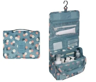ORGANIZER NA KOSMETYKI, KOSMETYCZKA ROZKŁADANA NIEBIESKA W KWIATY KS18WZ1 posiada kieszonki zarówno w środku jak i na zewnątrz !