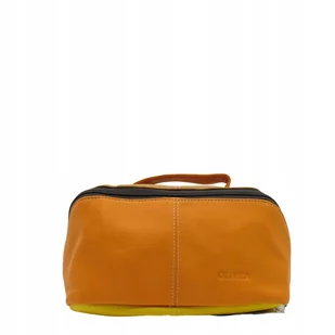 Kosmetyczka podróżna duża damska skórzana pojemna kieszenie rączka OLIVKA