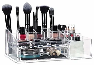 Akrylowy organizer do makijażu w szczegółach - Wymiary wys. x szer. x gł. : ok. 10 x 28 x 18 cm - Waga: ok. 750 g - Z jedną szufladą i 15 przegródkami - Wymiary wewnętrzne szuflady HBT: ok. 4 x 16,5 x 9 cm - Materiał: akryl - Kolor: