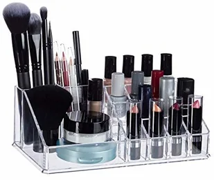 x szer. x gł. : 4,5 x 2,5 x 2,5 cm - 1x wąska przegródka wys. x szer. x gł. : 3 x 10,5 x 3,5 cm Praktyczny stojak na kosmetyki - Idealny do przechowywania kosmetyków - Wieża do makijażu wykonana ze zmywalnego akrylu - Do wszystkich rodzajów makijażu, takich jak szminki, tusze do rzęs itp.