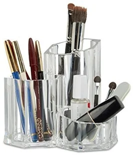 Mały pojemnik na pędzle pozwala utrzymać porządek na toaletce. Trzyczęściowy pojemnik do makijażu oferuje mnóstwo miejsca na wszelkiego rodzaju pędzle. Miseczki nadają się również do makijażu, takiego jak szminka, eyeliner, tusz do rzęs lub lakier do paznokci. Sześciokątny organizer na kosmetyki wykonany z przezroczystego tworzywa akrylowego przypomina diament. Kuweta do makijażu jest również dekoracyjnym dodatkiem łazienkowym, który może być również do akcesoriów do golenia, zestawów do manicure lub wacików i płatków kosmetycznych.
