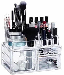 ok. 3 x 10 x 3,5 cm - Wymiary dużej przegródki HBT: ok. 7,5 x 10 x 9 cm Praktyczny stojak na kosmetyki - 2-częściowy zestaw do przechowywania kosmetyków - Elementy można ustawiać jeden na drugim lub pojedynczo - Wieża do makijażu wykonana z twardego akrylu - zmywalna - Szuflady i wkłady można całkowicie wyjąć do czyszczenia - Idealny do wszelkiego rodzaju makijażu, biżuterii, artykułów łazienkowych itp.