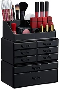 Organizer do makijażu z możliwością ustawiania jeden na drugim zapewnia porządek na toaletce i oszczędza konieczności szukania w kosmetyczce. Składający się z 24 półek, trzyczęściowy stojak do makijażu oferuje mnóstwo miejsca do przechowywania kosmetyków i biżuterii. Szuflady nadają się do przechowywania kremów, pudrów i cieni do powiek, a także zegarków, naszyjników i bransoletek. Praktyczny pojemnik na szminkę pomieści również lakier do paznokci, pędzle, długopisy i wiele więcej. Stwórz swój własny zestaw do makijażu dzięki stojakowi na kosmetyki.