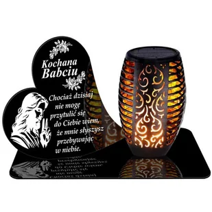 SOLARNY ZNICZ LED AŻUROWY PODSTAWKA STATUETKA NA CMENTARZ GRÓB DUŻA SERCE DLA BABCI