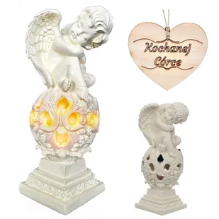 ZNICZ dla CÓRKI ANIOŁ SOLARNY do ogrodu lub na grób + zawieszka Kochanej Córce Lampa ,znicz LED zasilana energią słoneczną. Niebiański posłaniec pogrążony w ...