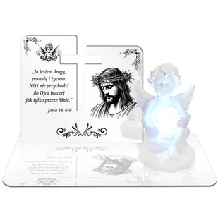 BIAŁY ZNICZ LED PREMIUM - znicz ANIOŁEK ŚWIECĄCY Z SERCEM LED ZMIENIAJĄCY KOLORY Informacje o produkcie: PODSTAWKA Wymiary: 25 cm x 16 cm Materiał podstawki:...