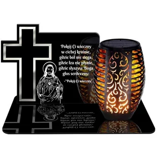 ZNICZ SOLARNY LED WIECZNY PODSTAWKA NA CMENTARZ GRÓB Krzyż EFEKT PŁOMIENIA
