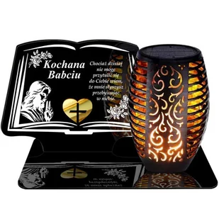 ZNICZ SOLARNY LED WIECZNY PODSTAWKA NA CMENTARZ GRÓB Księga EFEKT PŁOMIENIA DLA BABCI