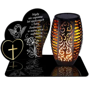 ZNICZ SOLARNY LED WIECZNY PODSTAWKA NA CMENTARZ GRÓB Serce EFEKT PŁOMIENIA