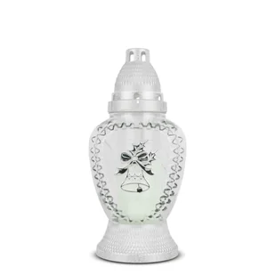 Znicz Świąteczny Dzwoneczek 25 cm Srebrny DP752 Znicz Szklany Boże Narodzenie z Aplikacją z Wkładem