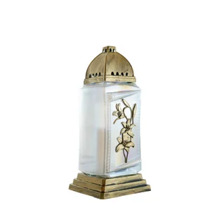 Znicz szklany lilie 34 x 14 cm 45 h złoty