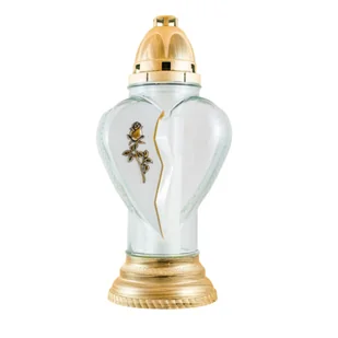Znicz szklany Serce duże róża 39 cm złoty