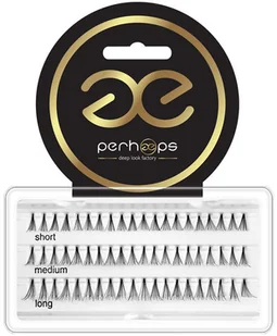 PERHAEPS - KĘPKI RZĘS - MIXED - 60 SZT MIXED Kępki rzęs - różne długości, czarne, bezwęzełkowe, stożkowe Doskonały sposób na modelowanie kształtu oka. Aplikując kępki short w wewnętrznym kąciku, medium na środku linii powieki, a long w zewnętrznych kącikach oczu, otrzymujemy najbardziej zalotne i powabne kocie spojrzenie. Dłuższe kępki medium lub long nałożone na środek linii oka, optycznie je otworzą. Mix długości rzęs umożliwia indywidualnie dobraną stylizację i pozwala uzyskać dowolny efekt w zależności od potrzeb. Lekkie bezwęzełkowe rzęski o stożkowym zakończeniu gwarantują naturalny efekt, do złudzenia przypominając prawdziwe rzęsy.