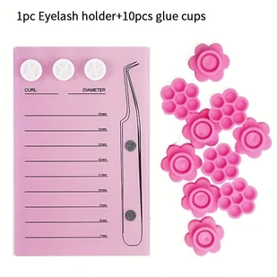 TEMU Magnetowy akrylowy uchwyt do miarkowania przedłużania rzęs z paletą kleju i podkładką do fałszywych rzęs - narzędzia do przedłużania rzęs dla