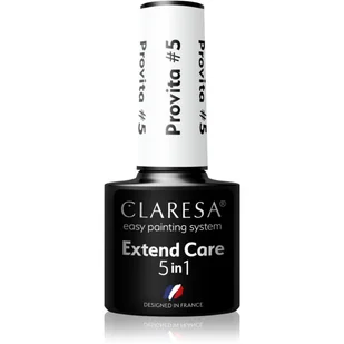 CLARESA Extend Care 5 in 1 Provita #5 Claresa extend care 5 in 1 PROVITA zawiera witaminę E, biotynę i wapń zawiera cenne oleje: z nasion róźy i kukurydziany zawiera ekstrakt z kasztanowca nadaje wygląd naturalnego manicure wyrównuje koloryt możliwe przedłużenie paznokcia do 1 cm Sposób użycia: Stosować jak standardową bazę hybrydową. W zależności od stanu paznokcia, rozprowadzić 1 lub 2 warstwy bazy na płytce i każdą z nich utwardzić 30-60 sek. w lampie LED/ UV.
