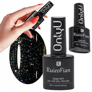 Czarno Brokatowy Hybrydowy Lakier Do Paznokci Z Polyskiem Lakier Uv/L125