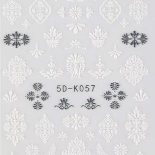 Naklejki biżuteryjne 5D samoprzylepne wypukłe akrylowe Nr 5D-K057 Kilkanaście najbardziej pożądanych wzorów naklejek 5D o wyjątkowej, wypukłej fakturze. Wyglądem przypominają misterne zdobienia z akrylu, a wykonanie tego manicure nie zabierze Ci więcej, niż kilka minut w przeciwieństwie do pierwszej wymienionej metody. Bardzo łatwe w użyciu, wystarczą 3 proste kroki. Każdy poradzi sobie z ich łatwą aplikacją! Dzięki nim bardzo szybko i niewielkim kosztem wzbogacisz każdą stylizację. Do wyboru mnóstwo intrygujących wzorów.