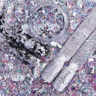 Pyłek do paznokci Prismatic Flakes nr 1 Marzyłaś kiedyś o krystalicznej tafli płynnego metalu na swoich paznokciach$234 Poznaj cudowne płatki do zdobienia paznokci w najbardziej pożądanych przez nasze klientki kolorach holograficznego srebra i złota. Pryzmatyczny efekt, o jakim śniłaś! Idealne odbicie światła i jego załamania zapewni ci wyjątkowy efekt w zaledwie kilka chwil, nawet jeśli nie masz doświadczenia w stylizacji paznokci. Już nie musisz stosować żadnego koloru podkładowego pod spód-oczywiście, jeśli nie chcesz! Zakochaj się w ich efekcie holograficznego aluminium. Nie bój się eksperymentować! Produkt niezwykle wydajny i uniwersalny. Nie tylko wykorzystasz go do stylizacji karnawałowej, sylwestrowej, ale także będzie idealnym dopełnieniem każdej wieczorowej kreacji.