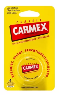 Carmex Classic - balsam do ustBalsam do ust Carmex zawiera unikalny zestaw składników, wraz z naturalnymi substancjami nawilżającymi, takimi jak masło kakaowe, wosk pszczeli i lanolina. Te i inne składniki nadają ustom zdrowy wygląd, dzięki utrzymywaniu odpowiedniego poziomu nawilżenia, co zapobiega ich wysuszaniu i pękaniu.