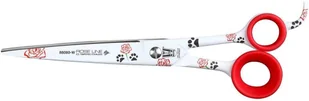 Wyposażone w gumowe ringi oraz jednostronny hak. Nożyczki z serii Art posiadają czerwono-czarne zdobienia w łapki i róże.