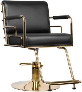 Stylowy fotel fryzjerski. Bardzo komfortowy, idealnie pasujący do wnętrz eleganckich salonów. Regulowany w płaszczyźnie pionowej. Bardzo stabilny i solidny. Obicie z najwyższej jakości ekoskóry koloru czarnego.