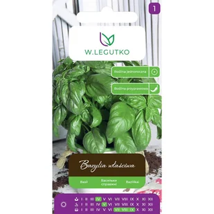 Roślina jednoroczna wysokości około 50 cm. Jako przyprawy używa się liści zbieranych w czasie kwitnienia roślin. Świeże można dodawać do kiszenia ogórków, suszone zaś do twarogu, sałatek, sosów, zapiekanek, pieczonych mięs i ryb. Są szeroko stosowane w kuchni śródziemnomorskiej np. jako składnik pesto czy komponent sałatek i dań z pomidorami.