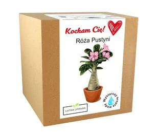 Zestaw do uprawy Róży Pustyni - prezent na Walentynki Kocham Cię! Łatwe w uprawie i utrzymaniu Bonsai Róża pustyni - wyglądem przypomina mini baobab, który jest świetny do formowania, dodatkowo w okresie kwiecień - wrzesień obsypuje koronę masą różowych kwiatów. Adenium jest wyjątkowym sukulentem o grubym, gromadzącym wodę pniu. W stanie dzikim można go znaleźć w krajach Afryki. Elementem dekoracyjnym jest efektywny pokrój (kształt) rośliny, oraz przepiękne pomarańczowo czerwone kwiaty. Są proste w uprawie i doskonale nadają się na zajęcie wyeksponowanego, miejsca w domu.