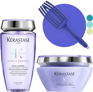 Farbujesz włosy na blond i szukasz sposobu na to, by wyglądały jak najpiękniej? Twoje blond włosy oczekują dostosowanej do nich pielęgnacji, która pozwoli im lśnić pełnym blaskiem? Chcesz by Twoje włosy blond nie tylko były lśniące, nawilżone i miękkie w dotyku, ale również gładkie za sprawą doskonałej szczotki do włosów? Wybierz zatem nasz wyjątkowy zestaw do włosów blond Kérastase Blond Absolu z legendarną szczotką Olivia Garden Fingerbrush. Pełny opis produktów: Kérastase Blond Absolu maska do włosów farbowanych na blond 200ml Kérastase Blond Absolu Bain Lumiere, szampon nawilżająco rozświetlający do włosów blond 250ml Olivia Garden Fingerbrush Bloom / Tropical Medium, szczotka do rozczesywania włosów, różne kolory Cechy zestawu Kérastase Blond Absolu i szczotki do włosów Olivia Garden Fingerbrush: rozświetla blond włosy, zwiększając ich blask do 24 godzin chroni kolor maska neutralizuje żółte tony, ochładzając kolor nawilża bez obciążania zawiera wygładzające i nawilżające składniki takie jak kwas hialuronowy i wyciąg z szarotki alpejskiej blond włosy są mocne, gładkie i miłe w dotyku szczotka w pięknym kolorze doskonale je rozplątuje jest delikatna dla włosów i skóry głowy podczas czesania włosy się nie elektryzują można jej używać do suszenia włosów suszarką