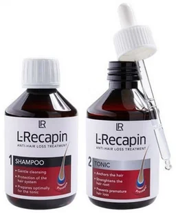 Szampon poprawia ukrwienie i strukturę włosa oraz wzmacnia cebulki włosów. Delikatnie myje włosy. L-Recapin(R) szampon do włosów zalecany jest w przypadku zauważonego problemu przedwczesnego łysienia. Optymalnie przygotowuje włosy i skórę głowy na przyjęcie składników zawartych w toniku. L-Recapin(R) tonik do włosów LR - należy nakładać punktowo na skórę głowy po umyciu włosów, gdy są one jeszcze wilgotne.