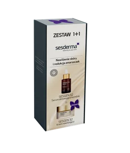 Sesderma Zestaw Sesgen 32 Serum + Sesgen 32 KremSesderma Zestaw Sesgen 32 Serum + Sesgen 32 Krem to innowacyjna kuracja przeciwstarzeniowa, stworzona z myślą o skórze zmęczonej, narażonej na stres i zaburzenia rytmu dobowego. Dzięki połączeniu tripeptydu 32 i teprenonu, kosmetyki działają bezpośrednio na proces starzenia się komórek, przywracając skórze energię, witalność i zdrowy wygląd. Sesgen 32 Serum stymuluje produkcję kolagenu i elastyny, wspiera regenerację komórkową, redukuje zmarszczki i oznaki zmęczenia. Łagodzi podrażnienia i poprawia elastyczność skóry, nadając jej gładkość i komfort. Sesgen 32 Krem, wzbogacony w masło karite, ceramidy i kwas hialuronowy, intensywnie nawilża, chroni przed przesuszeniem i odbudowuje naturalną barierę hydrolipidową.