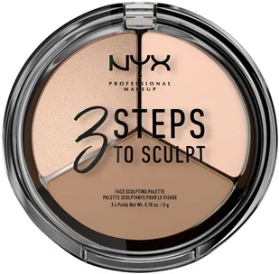 3 STEPS T SCULPT - FACE SCULPTING PALETTE marki NYX Professional Makeup. Paleta do konturowania. Składa się z 3 idealnie dobranych odcieni przeznaczonych do konturowania, rozświetlania i rozjaśniania twarzy. Innowacyjna konsystencja pozwala na bezproblemowe mieszanie i łączenie ze sobą produktów, dając przy tym bardzo naturalne wykończenie. Zestaw dostępny w 4 wariantach kolorystycznych.