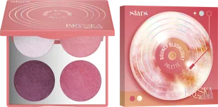 jeden w ciepłej tonacji, idealny dla złocistych looków, oraz chłodniejszy - perfekcyjny dla jasnych i neutralnych karnacji. Do tego dwa rozświetlające róże, które dodają koloru i blasku w jednym kroku - bez efektu pudrowości. To idealny zestaw do szybkiego, efektownego makijażu - zarówno dziennego, jak i wieczorowego. Sprawdzi się solo, ale też jako rozświetlające wykończenie klasycznego makijażu twarzy. Dlaczego warto sięgnąć po paletę Stars BRYSKA?- piankowo-kremowa formuła zapewnia doskonałe stopienie się ze skórą- intensywny blask widoczny nawet po przypudrowaniu- zawiera dwa uniwersalne rozświetlacze i dwa rozświetlające róże- nadaje efekt naturalnie promiennej, wypoczętej ceryJak używać?Nakładaj opuszkami palców lub syntetycznym pędzlem na szczyty kości policzkowych, powieki, łuk brwiowy lub usta.