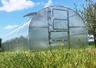 Szklarnia ogrodowa 24 m2 półokrągła z poliwęglanu 6mm z fundamentem