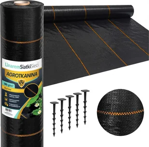 Linarem SiatkiSieci AGROTKANINA 90G 1,6x100m CZARNA AGROWŁÓKNINA UV 3% ANTYCHWASTOWA + KOŁKI
