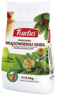 Nawóz krystaliczny FRUCTUS zapobiega brązowieniu igieł. Sprawdzi się do stosowania pod takie typy roślin iglastych jak tuje, świerki, sosny, jodły, jałowce, cisy, modrzewie oraz wrzosy. Charakteryzuje się dużą zawartością łatwo przyswajalnego magnezu. Zaleca się stosować go w terminie od kwietnia do sierpnia.