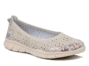 Miękka, skórzana wkładka zwiększa komfort użytkowania, a lekka konstrukcja sprawia, że buty niemal nie są wyczuwalne na stopie. Najważniejsze cechy modelu Skórzana, perforowana cholewka w beżowym kolorze Miękka skórzana wkładka Lekka i elastyczna podeszwa Kobiecy, uniwersalny fason Dzięki połączeniu estetyki i funkcjonalności wiosenne baleriny damskie świetnie sprawdzą się zarówno do sukienek, jak i do spodni czy jeansów. To także doskonały wybór dla kobiet, które poszukują ażurowych balerin damskich – lekkich, przewiewnych i stylowych w każdej sytuacji. Rozmiarówka typowa - pasuje zazwyczaj noszony rozmiar.