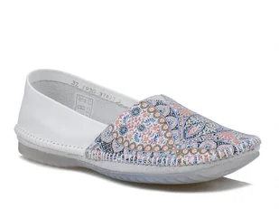 Baleriny damskie Maciejka 1930 skórzane białe kwiaty wygodne wsuwane-38