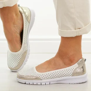 Białe skórzane ażurowe baleriny damskie na wiosnę, lato i jesień