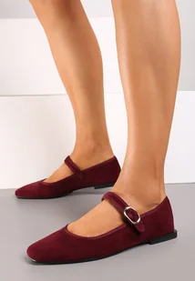 Bordowe Balerinki o Kwadratowym Nosku w Stylu Mary Jane z Paseczkiem Naiva