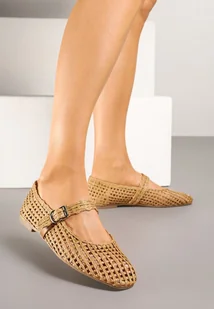 Brązowe Ażurowe Balerinki w Stylu Mary Jane z Plecioną Cholewką Deraelle