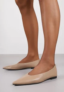 Ciemnobeżowe Balerinki Vices z Noskiem w Szpic i Skórzaną Wkładką Belviie